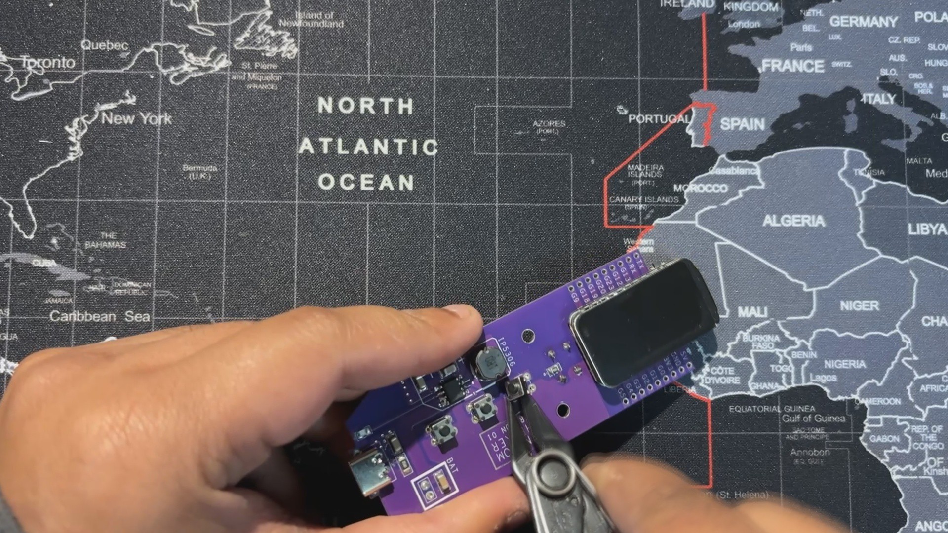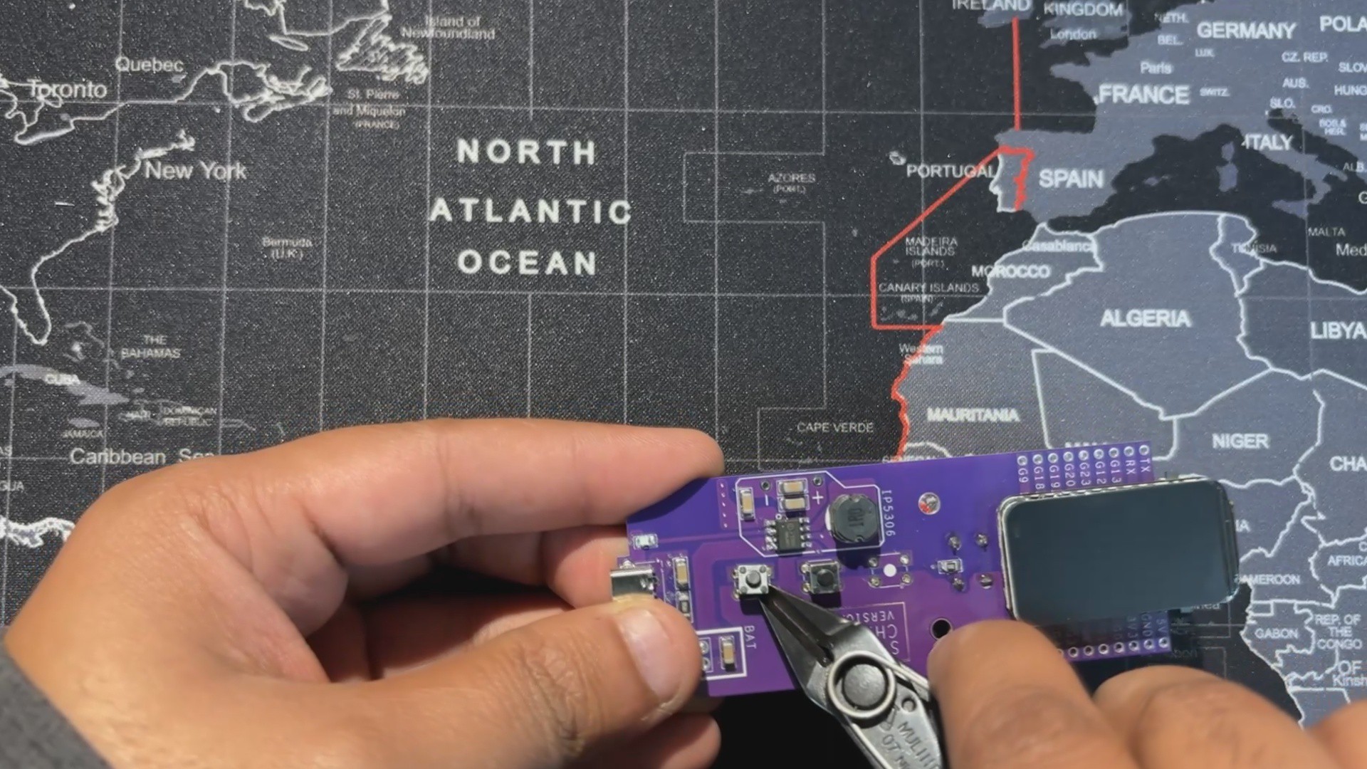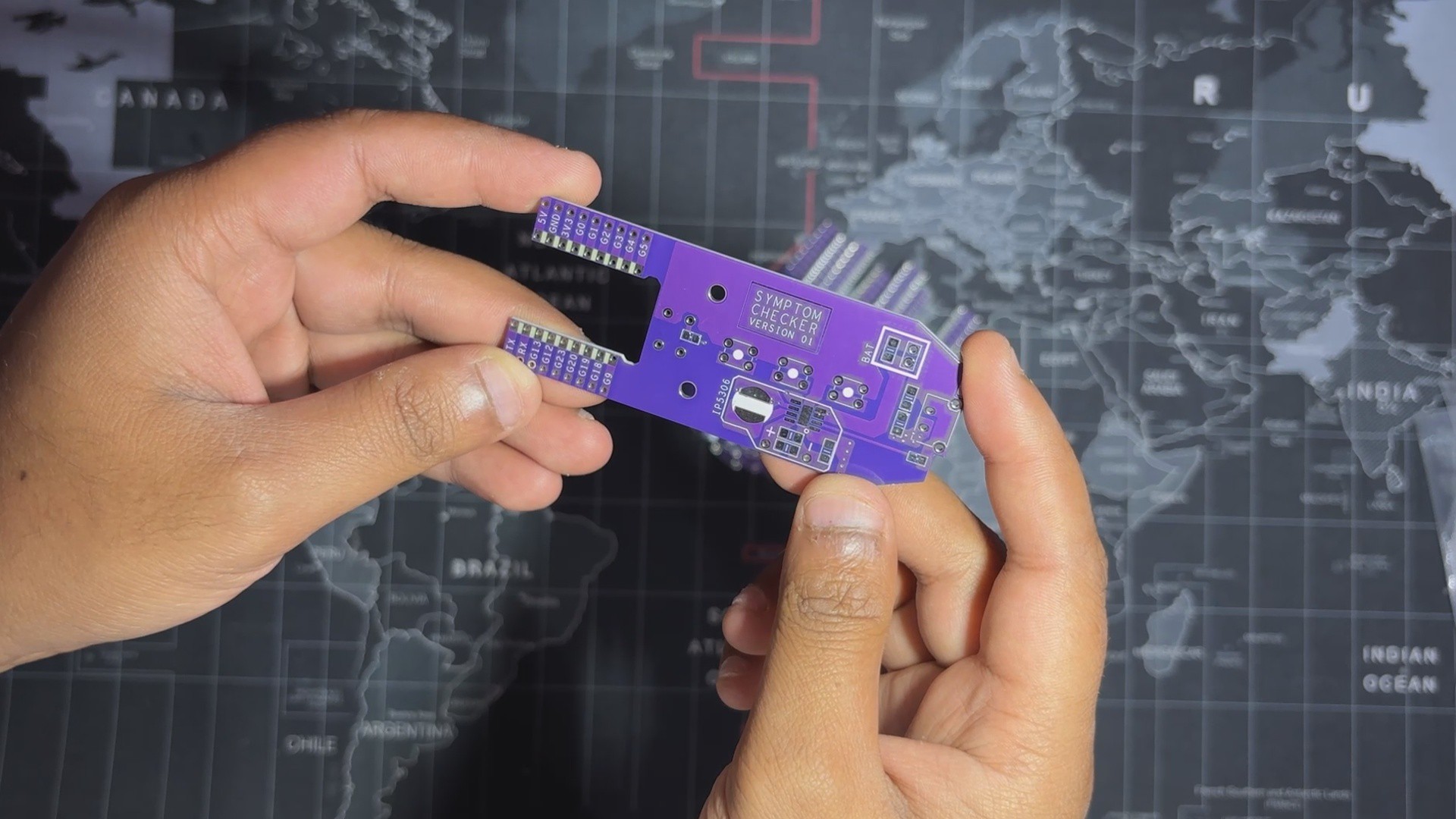 Once the board design was finalized, I opted for a purple solder mask with white silkscreen...