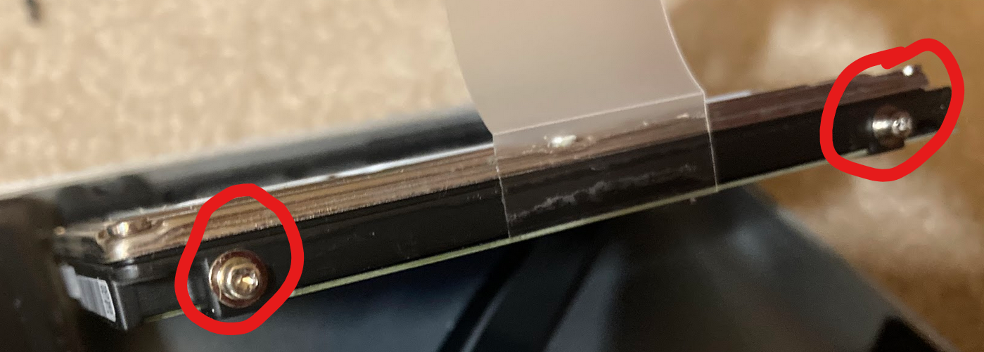 Step 4: As you can see in the image below, Apple installs small cylinder-head screws into the sides of the drive. The bumper we removed is designed to clamp down on these screw heads to hold the drive into place. If you don't want your drive to rattle around inside, you need to remove these from the factory drive and screw them onto your new drive.