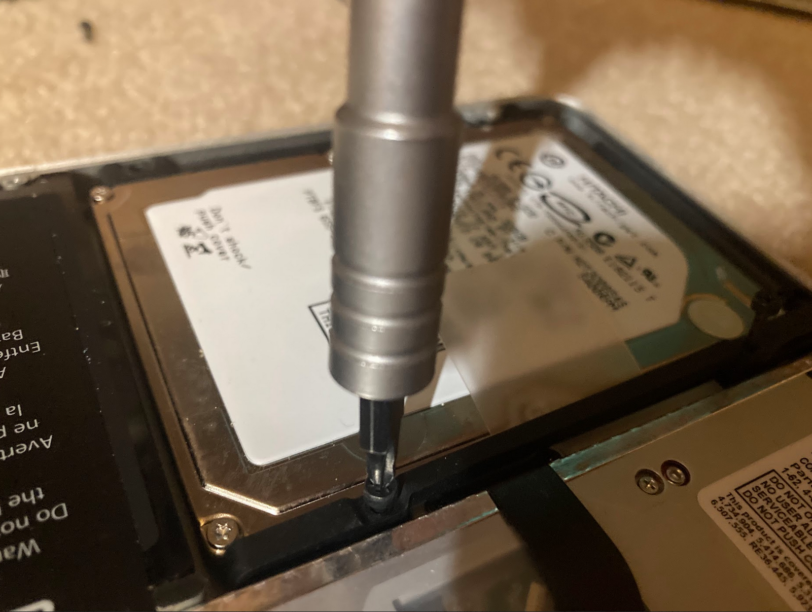 *If you are removing your hard drive, please read this next part carefully, because Apple's hard drive enclosures are a tad bit fragile.