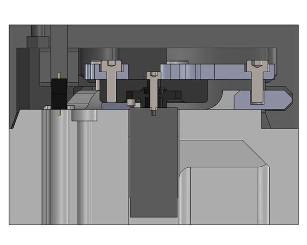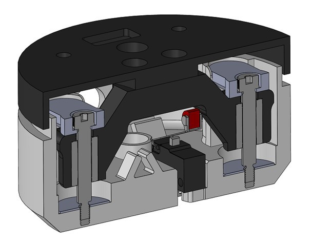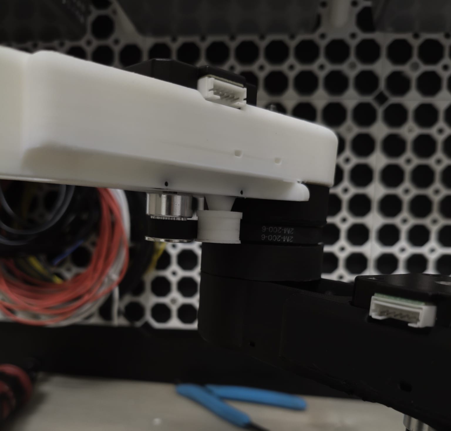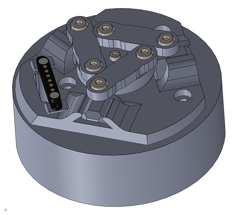 Below the wrist I have a Z compensation module that will help with tool changing, vision based picking and Z axis collision detection. Lastly there will be a servo controlled tool changing mechanism with a 6 pin magnetic pogo connector that will feed tools with power and up to 4 IO pins (one of the pins will be taken for connection verification).