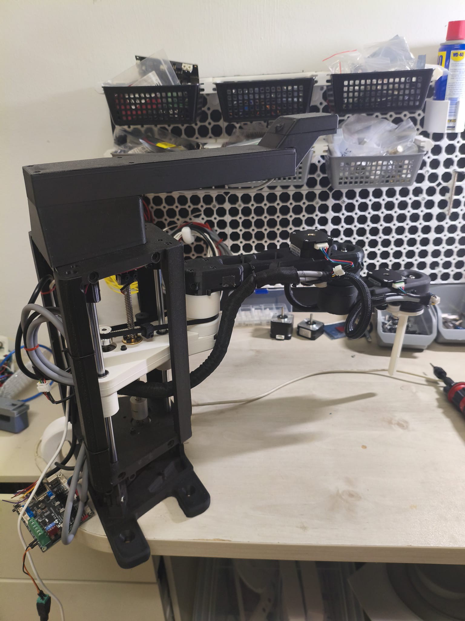 I think I will go with a 0.3m reach and hopefully up to 0.5 kg payload capacity. The main mechanical challenges are fighting flex in the tower and first joint and ensuring smooth stable Z axis movement. Iterations in their design should enable increasing reach and payload.