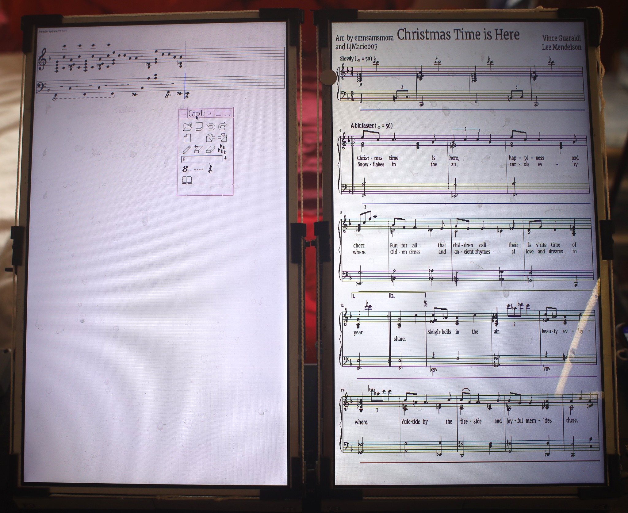 By the time 1 month had gone by, it was clear that the peanuts xmas song would not be transcribed in time.  Lion readable music notation from MIDI is a hard problem.