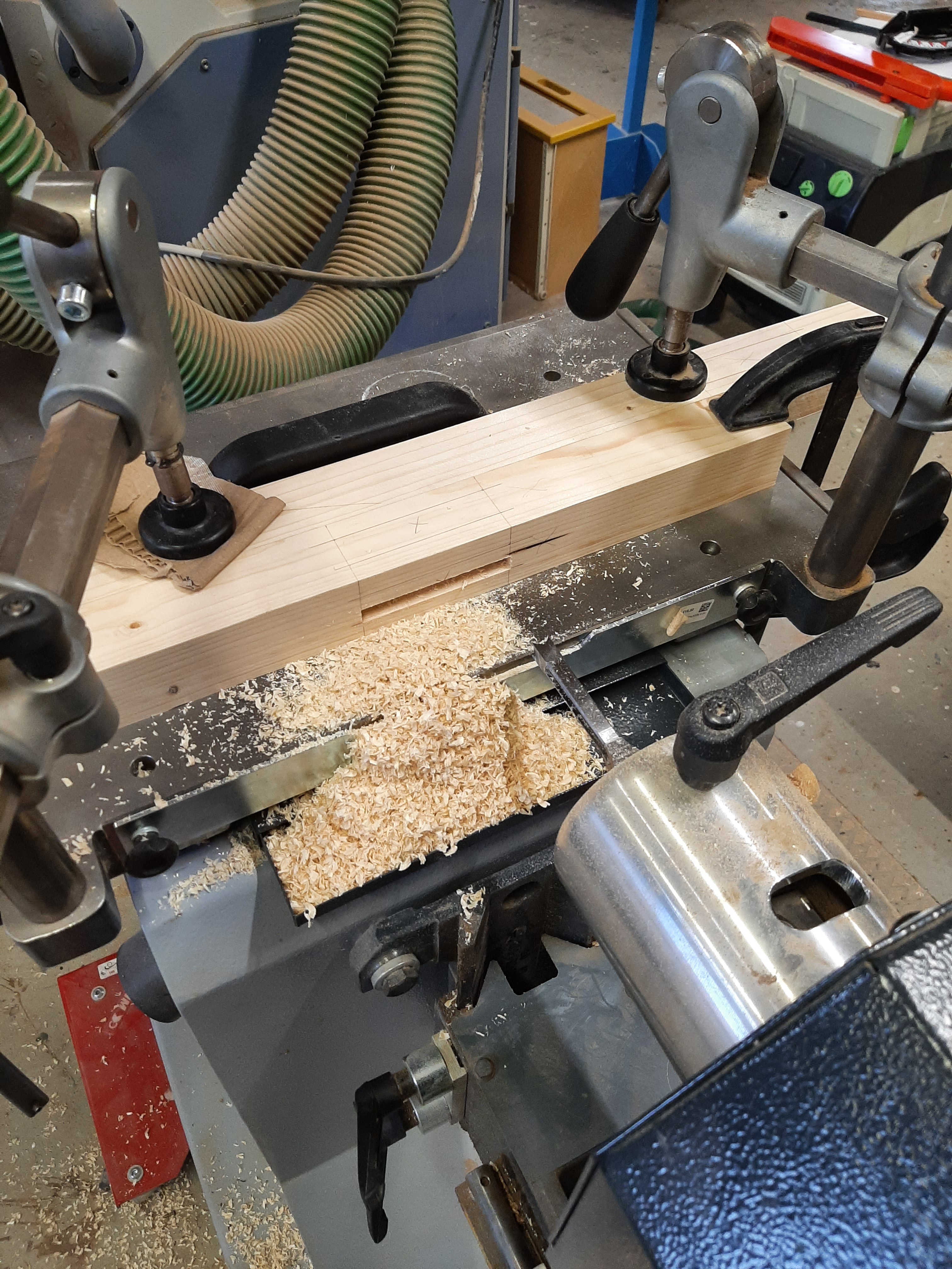The frame done with a mortising machine.