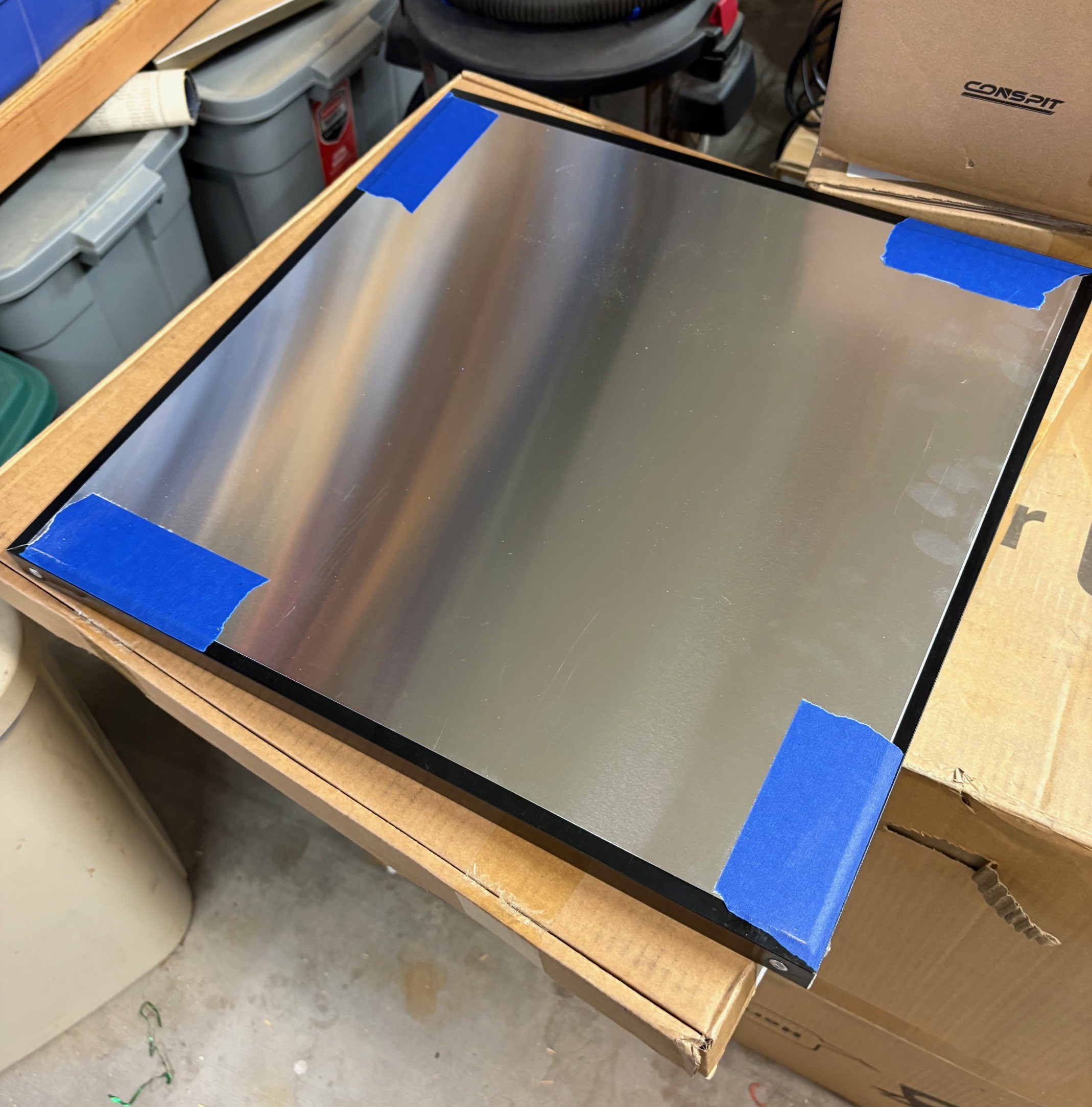 It came with a very thin sheet of aluminum to protect the bed. I had hoped this would be strong enough to hold its own shape, but it is about as thin as a coke can. I've temporarily taped it to the bottom, but this is not a great long term solution.