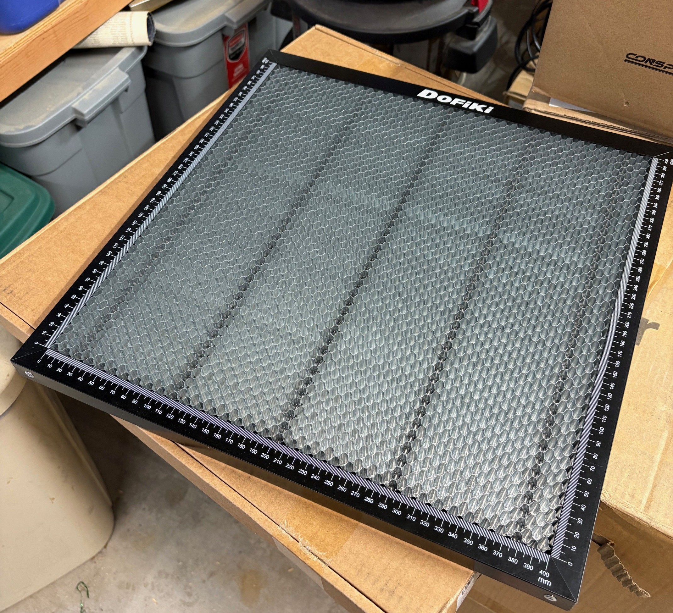 I picked up a honeycomb bed that is large enough to cover the full range of motion of the CNC.
