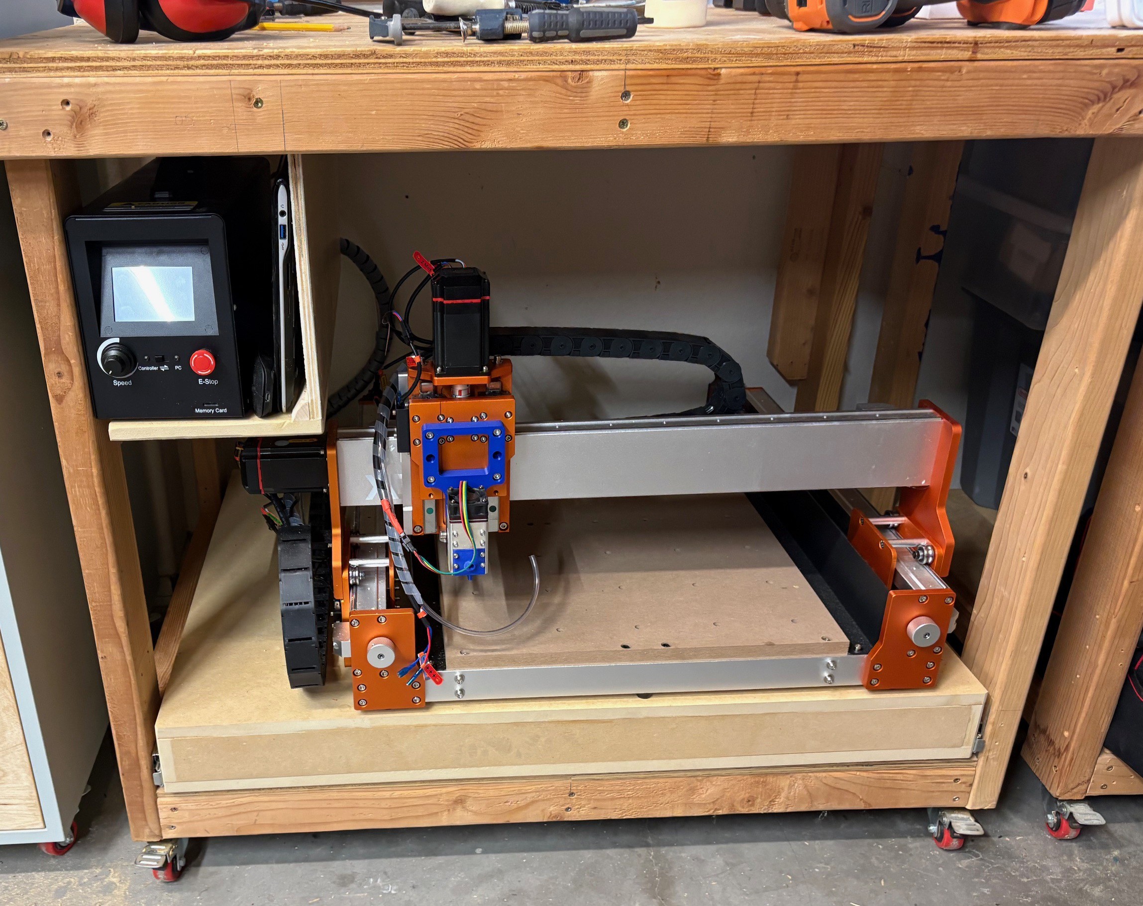 I added a little nook to put the controller. And eventually I will fully enclose this to keep the dust down, and to keep the laser light enclosed as well.