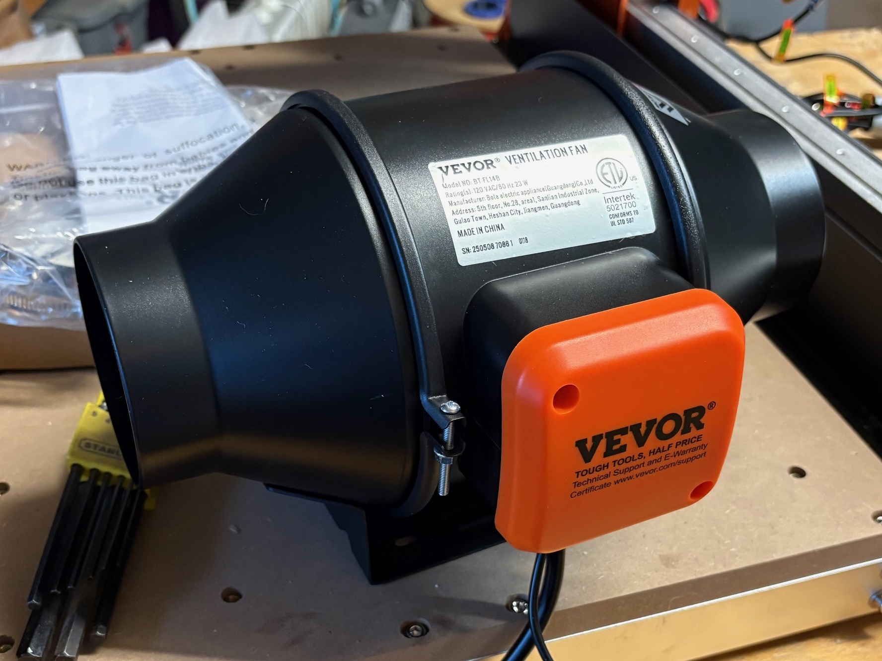 I also picked up a large inline fan to act as a fume extractor. Once I get this fully enclosed, I will use this to remove the smoke from cutting and send it outside where I won't have to breath it in.
