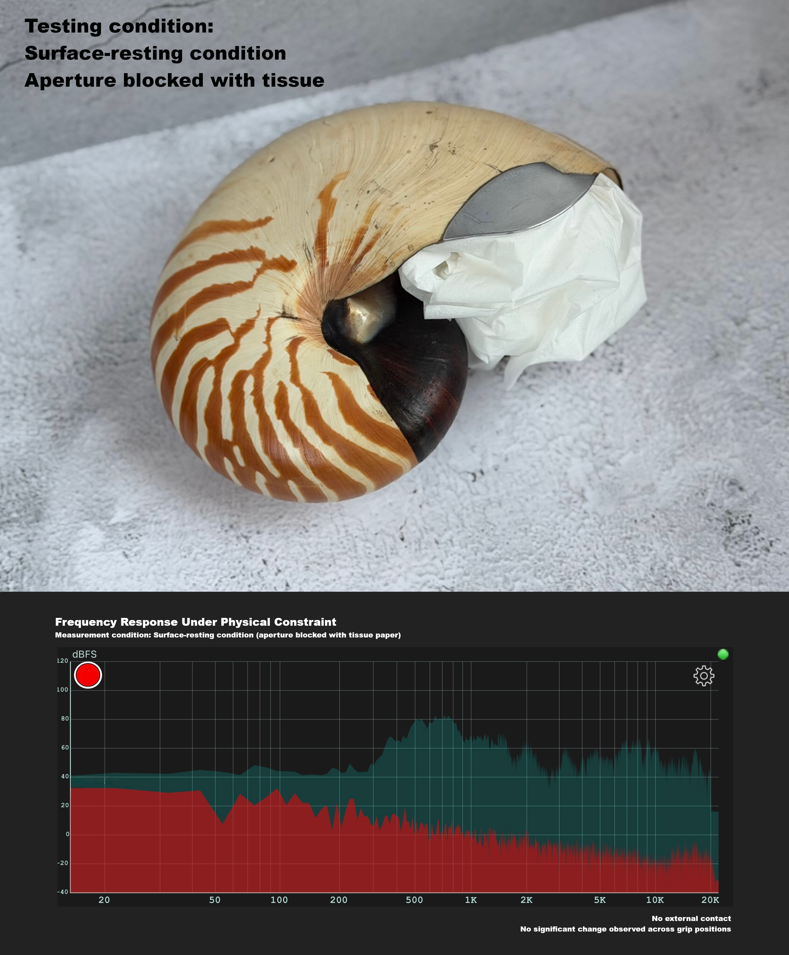 An experimental haptic speaker built from a Nautilus shell, documenting unexpected acoustic behavior observed during a hands-on maker projec