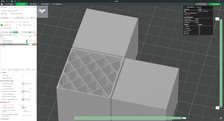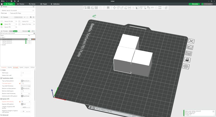 After conceptualizing my initial prototype with the mentioned components, I needed to find an applicable and repeatable method to produce plastic objects with varying stages of surface defects (none, high, and extreme), composed of different plastic materials. After thinking about different production methods, I decided to design a simple cube on Fusion 360 and alter the slicer settings to engender artificial but controlled surface defects (top layer bonding issues). In this regard, I was able to produce plastic objects (3D-printed) with a great deal of variation thanks to commercially available filament types, including UV-sensitive and reflective ones, resulting in an extensive image dataset of UV-applied plastic surfaces.
