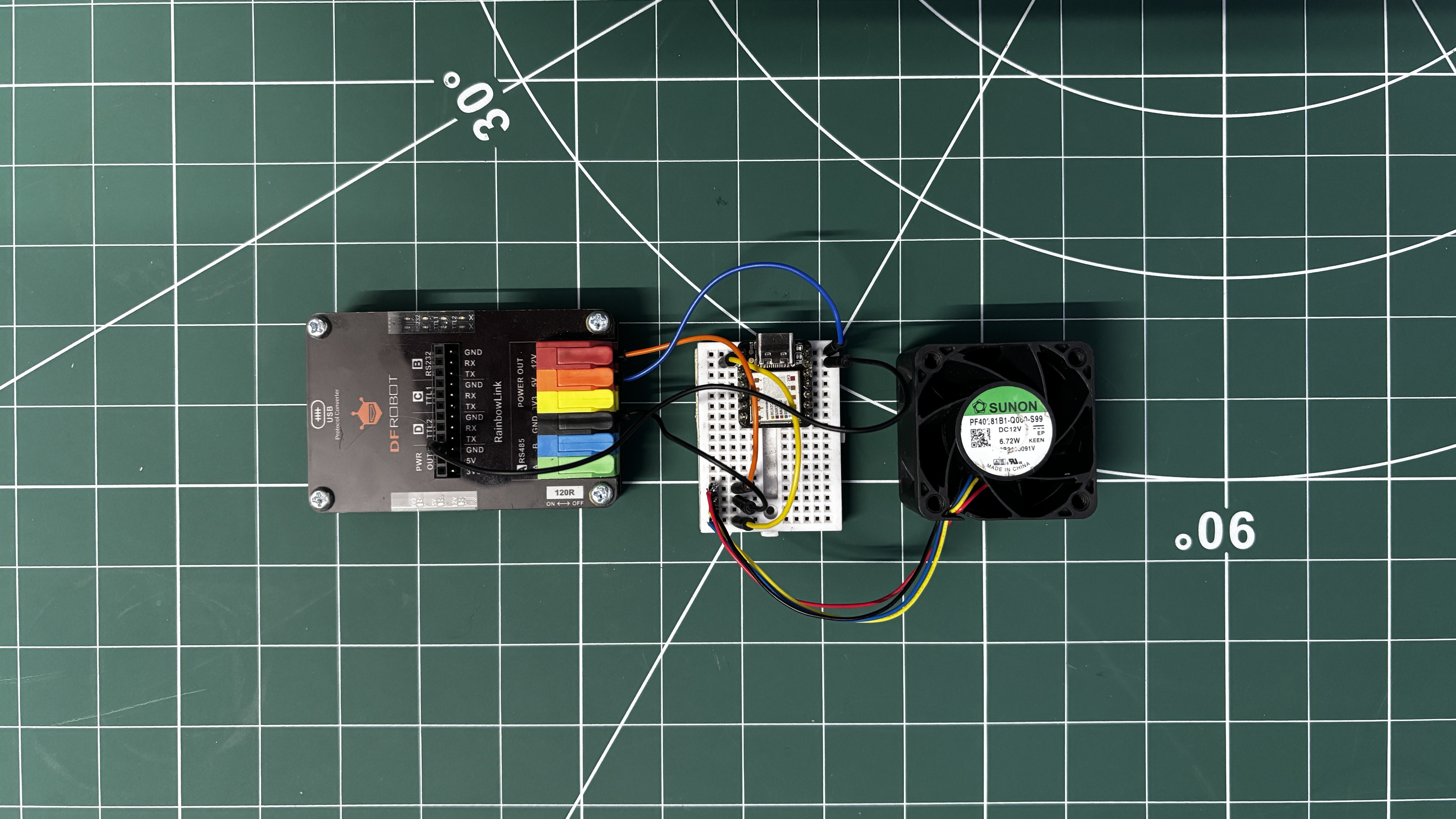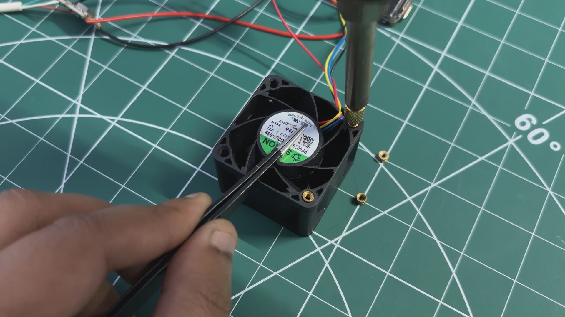 For the cooling system, we reused an older Sunon PF40281B1-000U-S99 tubeaxial DC brushless server fan. This fan operates at 12 V, has a power rating of 6.7 W (relatively low power for a server-class fan), and can reach a maximum speed of 20,000 RPM, with an airflow rating of 24.9 CFM.