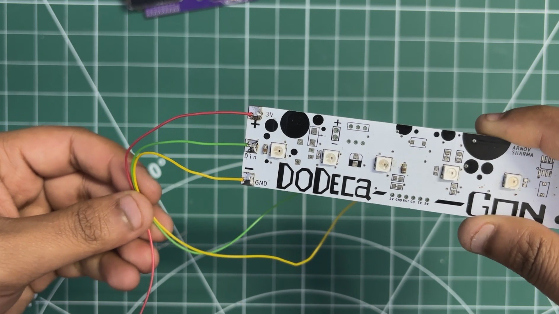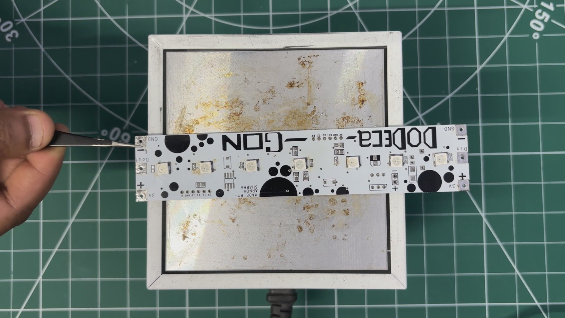 The second reused board is the Dodecagon RGB LED PCB. This PCB contains seven WS2812B RGB LEDs connected in series. It originally came from a project I built back in 2021, and we decided to repurpose it here as the primary lighting element. In this build, a glass brick is placed directly above the LED PCB, allowing the diffused light from the LEDs to illuminate the glass block evenly and create the lamp’s signature glow.