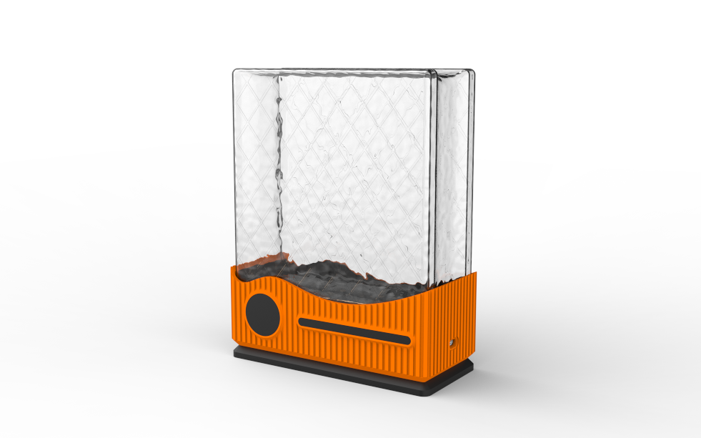 After finalizing the design, we exported three primary parts: the main body that houses the glass block, the base that supports the entire structure, and two accent pieces designed to enhance the overall aesthetic. These accent parts are mounted on the front side of the main body to add visual detail.