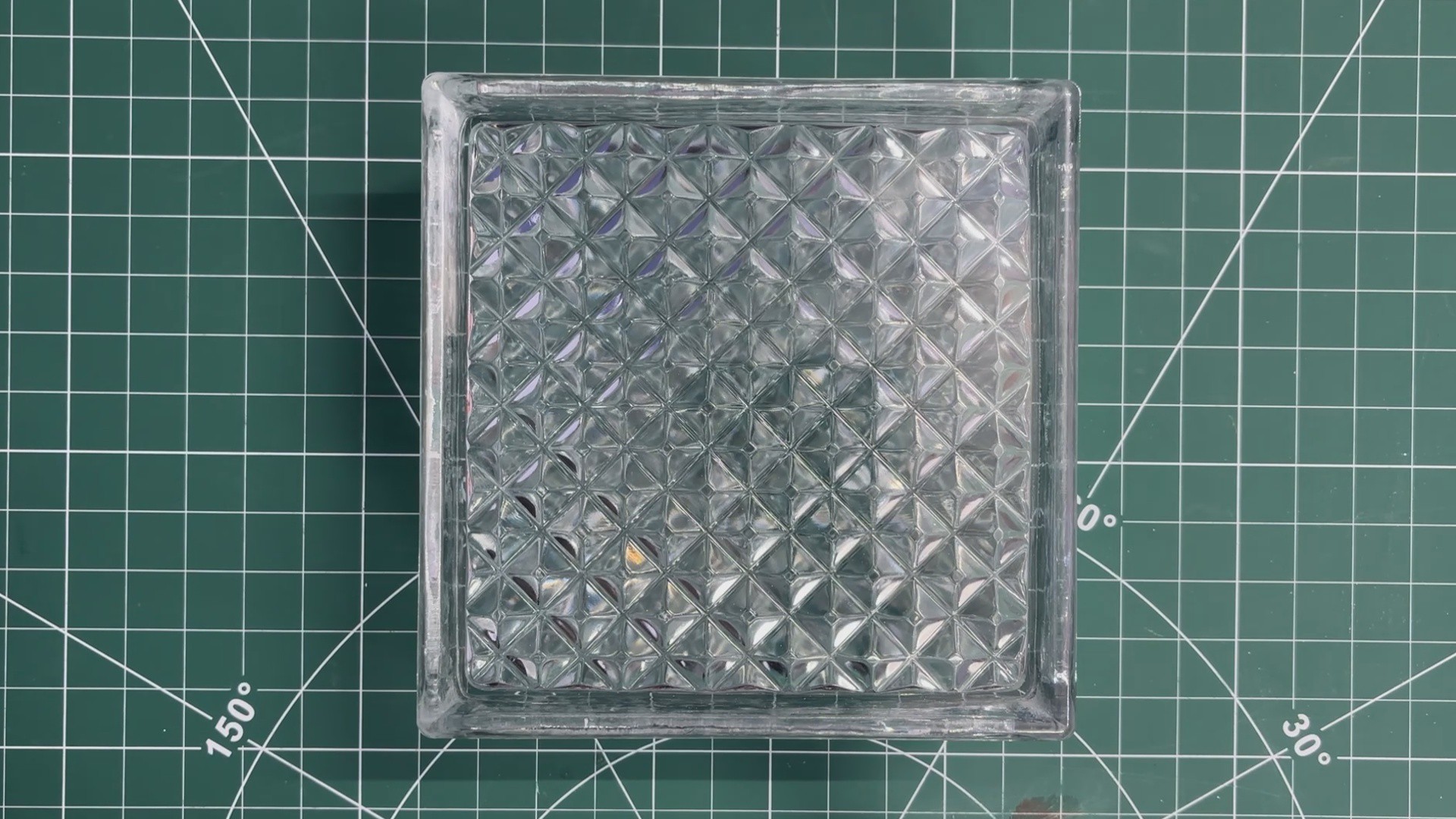 This was the star of our project, a glass brick, which is a hollow or solid block made of two pieces of glass that are fused together.
