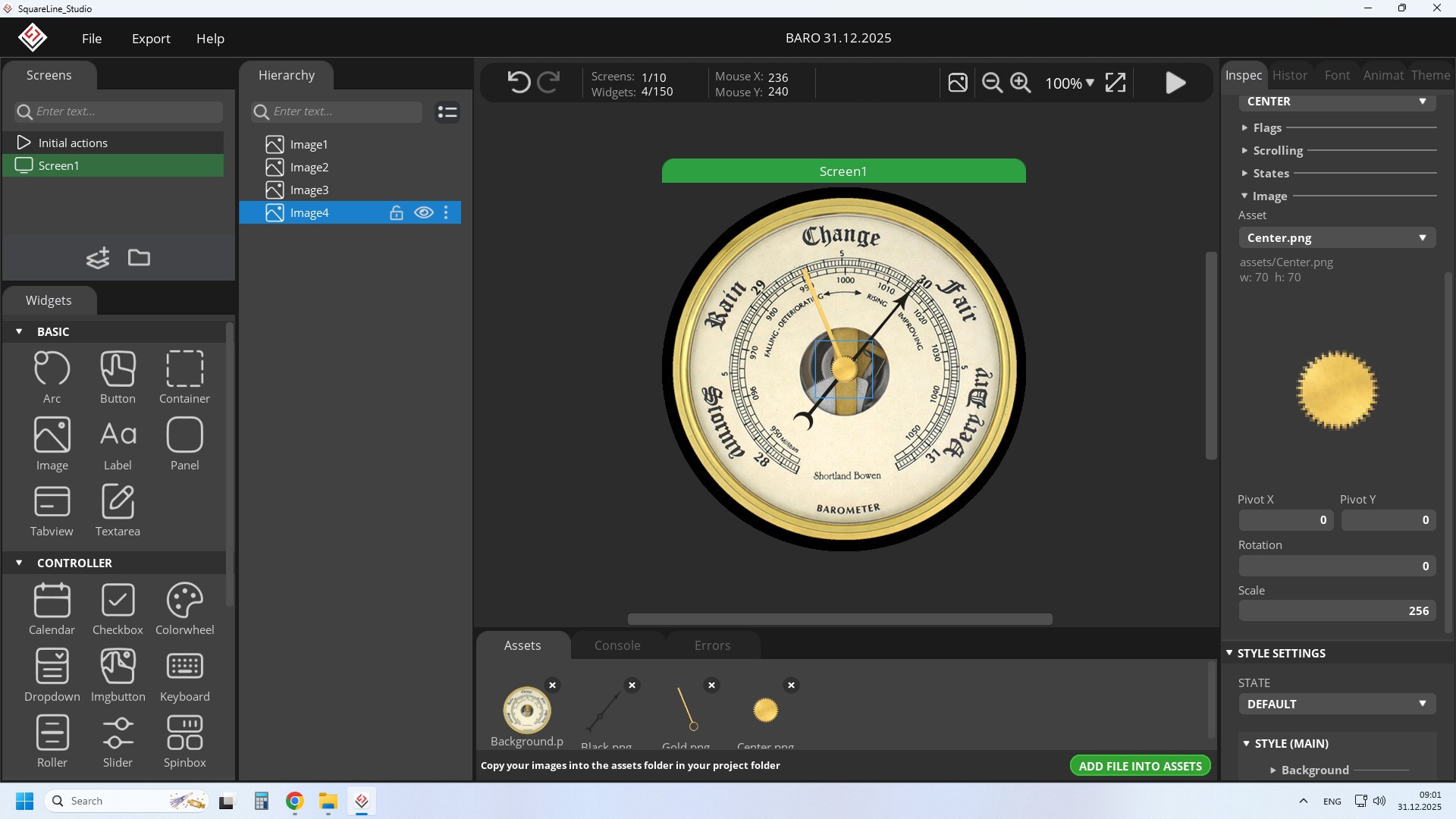 This time I will not dwell on the method of developing and creating the code and UI in Squareline Studio because it has been described in detail in many previous tutorials, but I will briefly describe the procedure to successfully recreate the project.