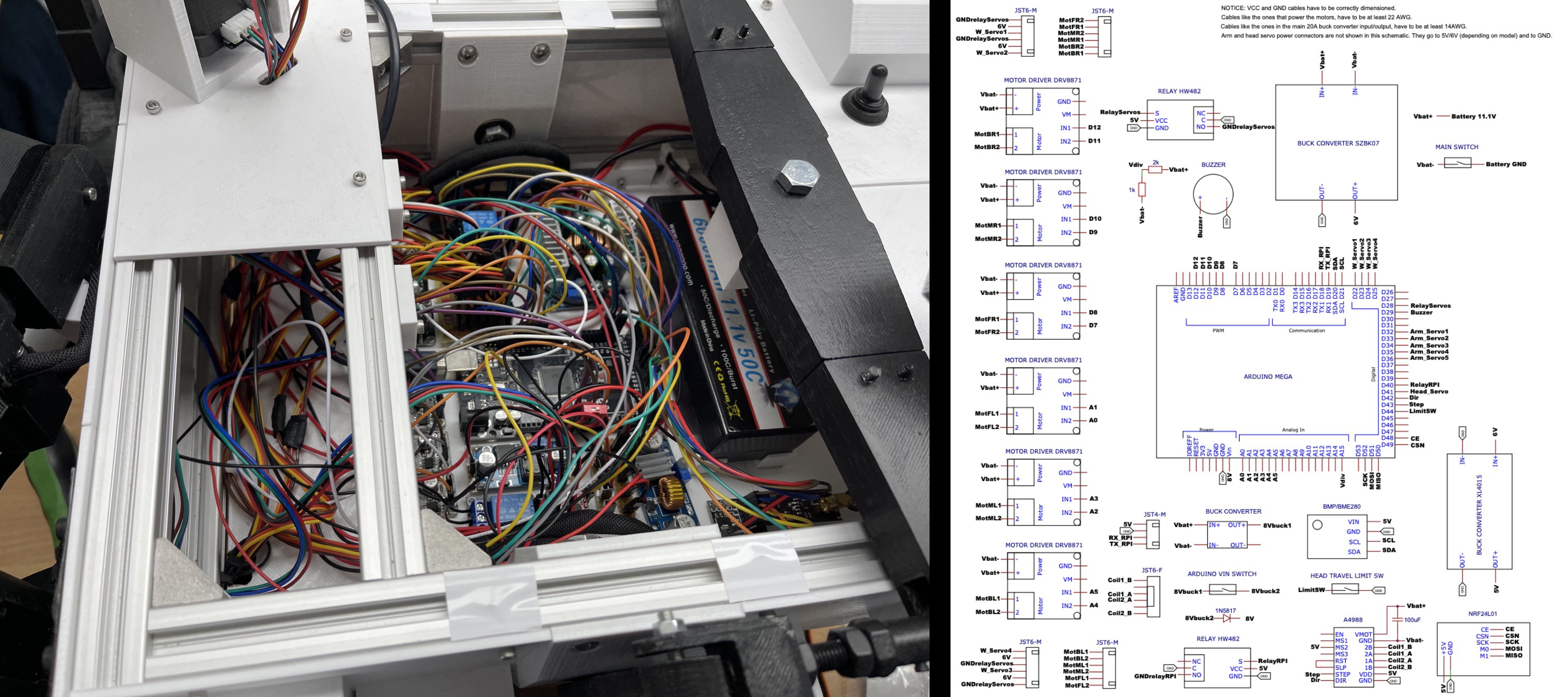 - 4 main operation modes: conventional driving control, 360º turn control, robotic arm control, head control