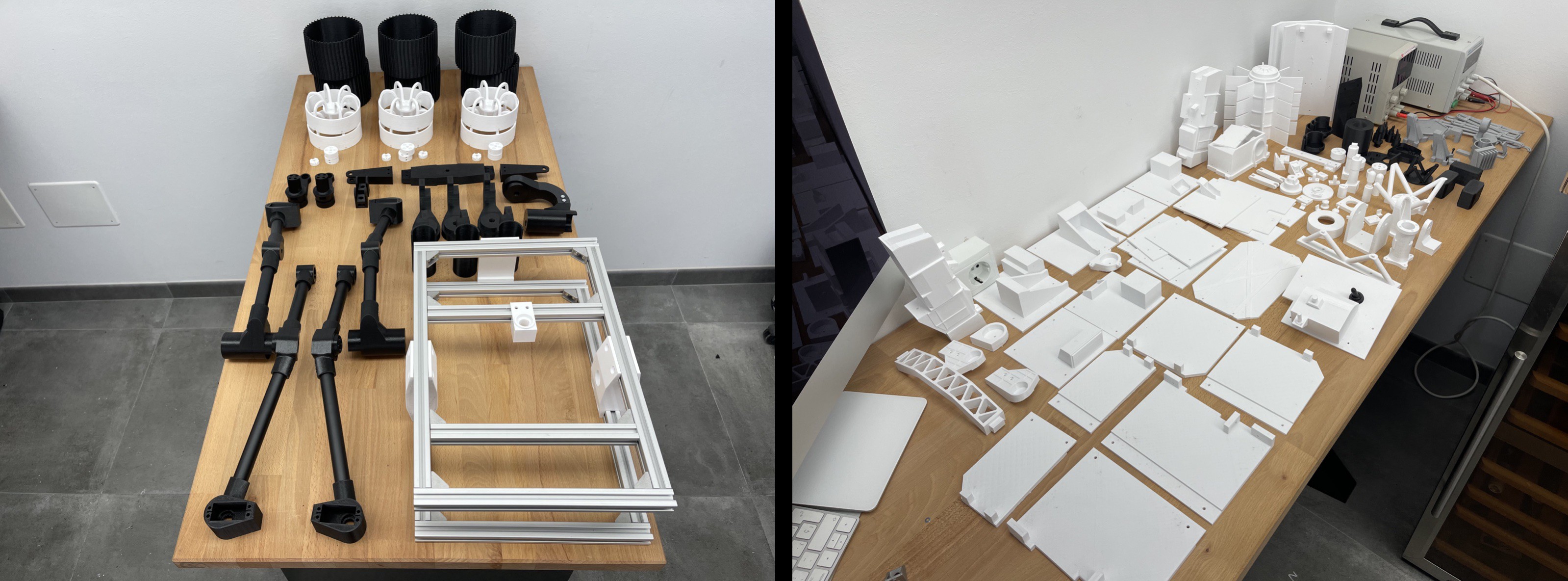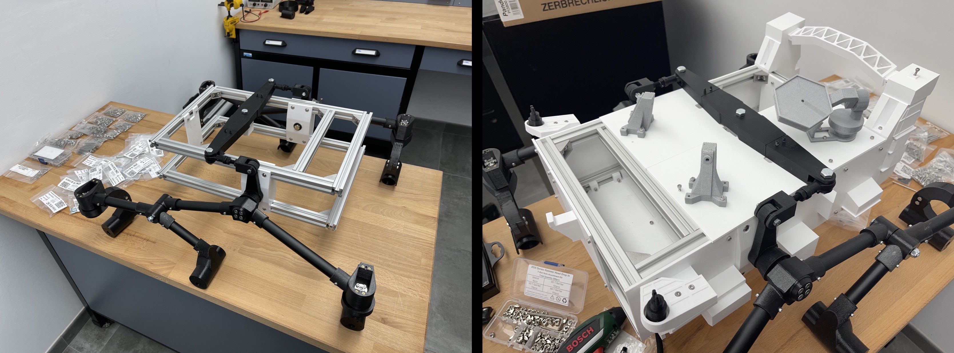 The robotic arm's 3D design was extracted from a GitHub project made by Jakob Krantz, who also created a Mars rover replica. This design was adapted and improved.