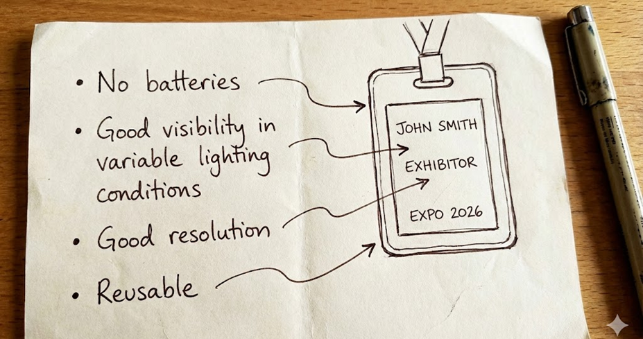 Imagine that your school, college, or university is hosting an event—like a science fair or expo. This time, the organizers want to do something different: instead of the usual cardboard or plastic name tags, they want participants to use electronic badges that can display information clearly and can be updated at any moment.