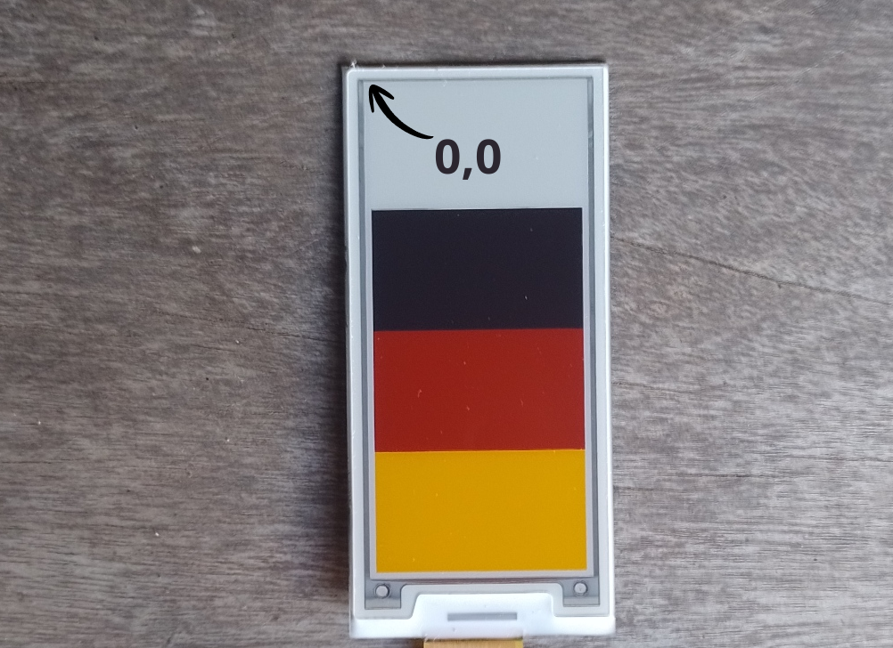 To place any element on the screen, an x, y coordinate system is used. The origin of this system can be changed (we’ll see that later), but by default, the 0,0 point is located at the top-left corner, on the side opposite the FPC ribbon cable.