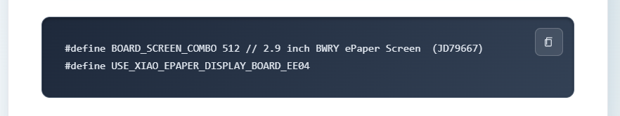 Each config file has a numeric code assigned to it. For the 2.9" color display and the EE04 board, the code is 512 (you can see this in your driver.h file). If you look in the User_Setups folder, you’ll find a file named Setup512_Seeed_XIAO_EPaper_2inch9_BWRY.h which includes these definitions: