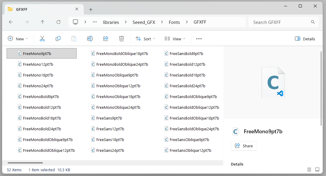The name of each font tells you its style and size. For example, the font FreeSans9pt7b can be broken down like this: