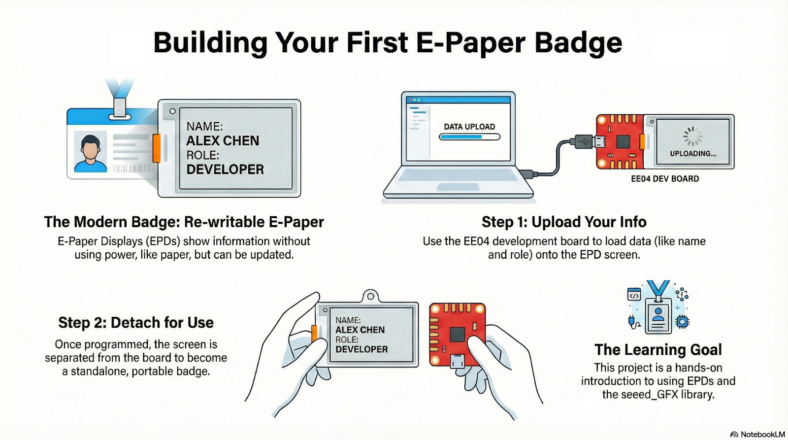 Imagine that your school, college, or university is hosting an event—like a science fair or expo. This time, the organizers want to do something different: instead of the usual cardboard or plastic name tags, they want participants to use electronic badges that can display information clearly and can be updated at any moment.