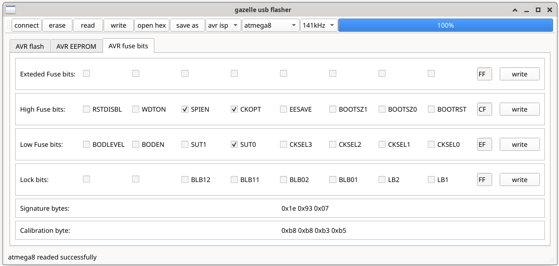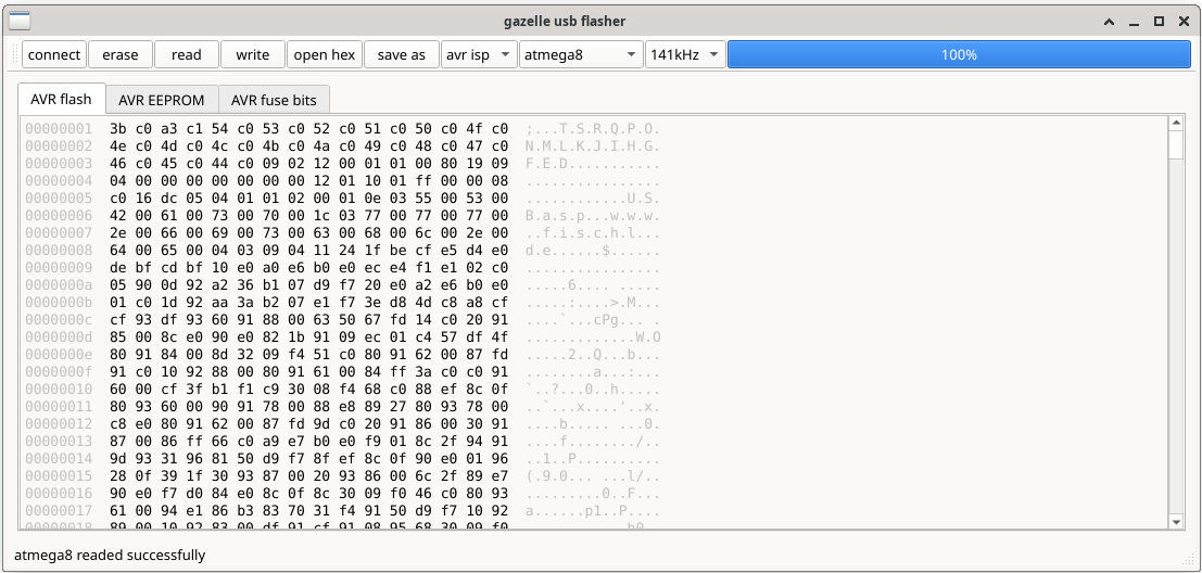- read - read flash or eeprom or re-read fuse bits (reads the dump for current tab).