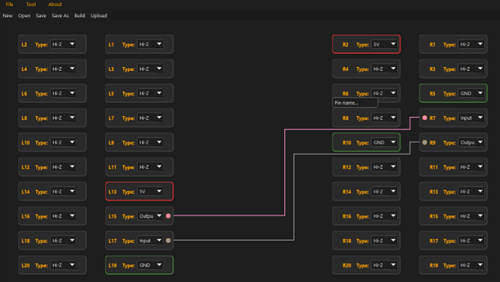With this setup, pins R1 to R20 correspond directly to pins 21 to 40 of J8. Users can also rename pins in the app for clarity. For example, R16 can be labeled as GPIO19, since R16 maps to pin 35 of J8.