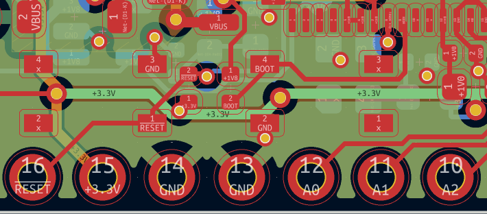 Based on my IO constraints I was only able to break out 3 pins capable of taking analog samples because for every analog pin it would take up 2 digital IO and I just couldn't spare them. Also, I am using the internal reference, which isn't particularly accurate and limits the measurement voltage to around 1V, sort of an ESP8266 vibe. There is obviously room for improvement here, and sometime I want to take another look at in future revisions of the board.