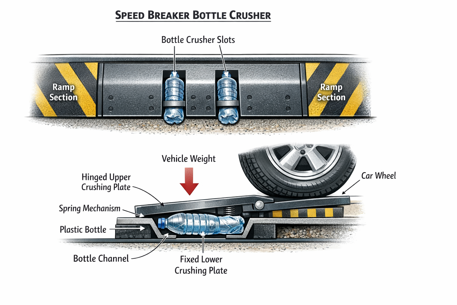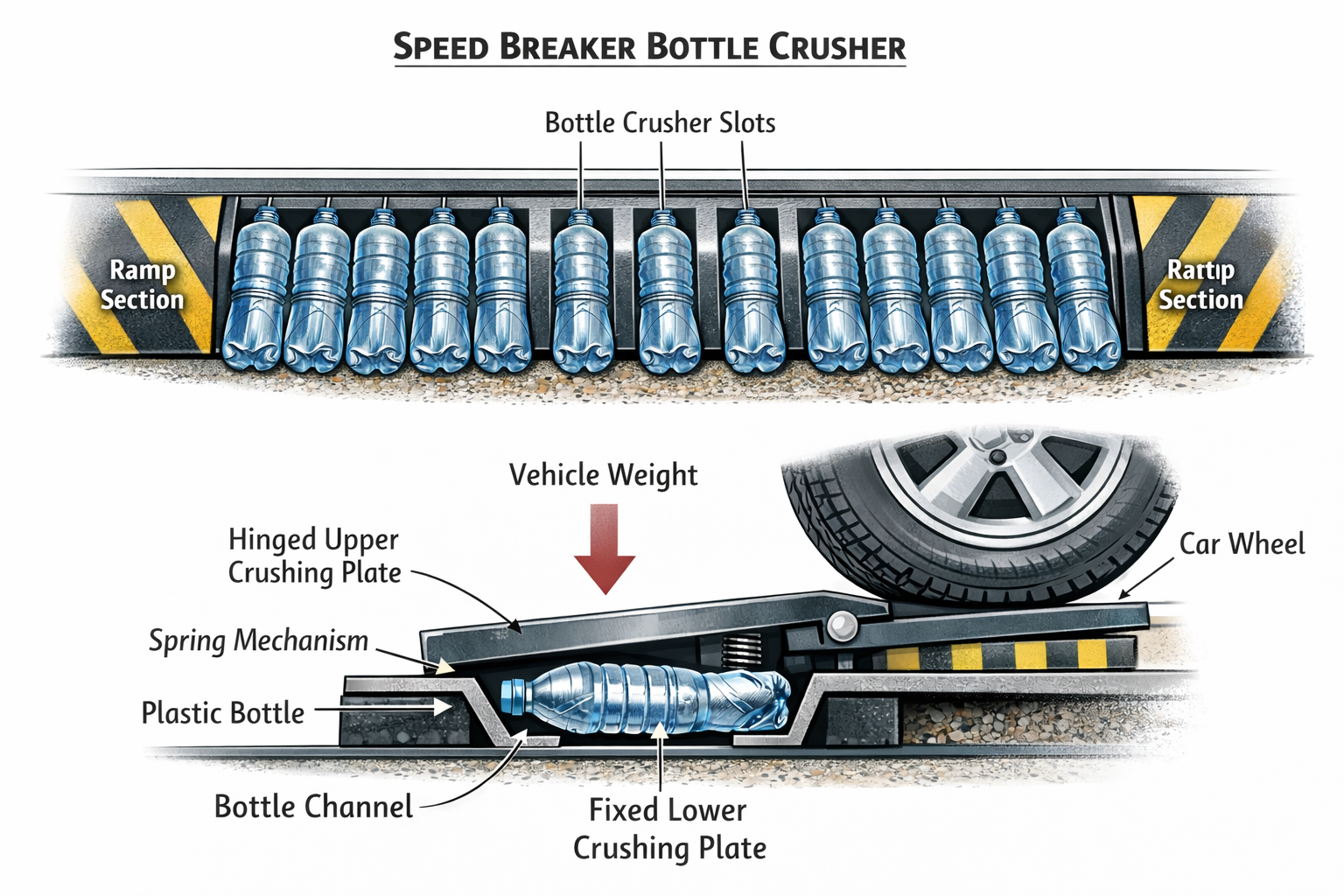 Plastic bottle crashing speed breaker Gallery