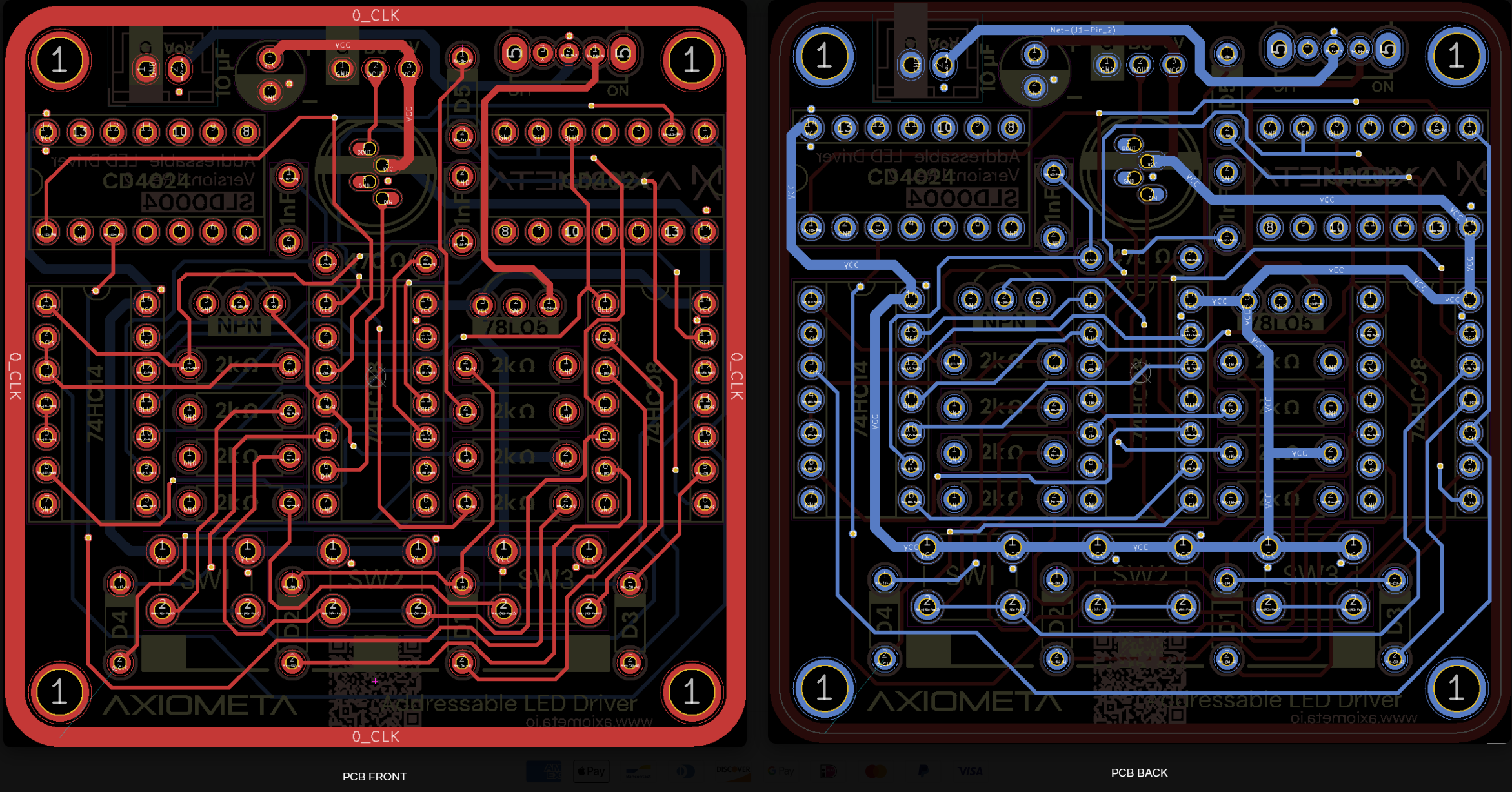 I laid out a soldering kit version of the circuit, designed to be 55 mm × 55 mm and symmetrical. It includes a through-hole WS2812 LED on the board itself so it works standalone without an external strip. Three buttons, all the logic, and a header for connecting more LEDs if you want.