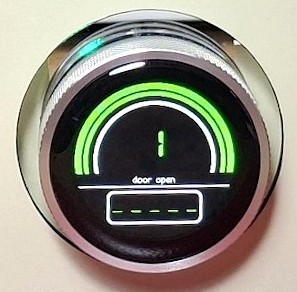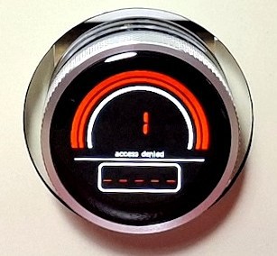 Now let's see how this device works in real conditions. When the lock is turned on, the image appears on the display, which is divided into two parts. In the upper part, the specific number is entered, and the lower half is reserved for the complete password. In this demo case, the entered password will be visible, otherwise in real use only asterisks would appear here. We select the number by turning the rotating display, and confirm it by pressing the button. If we enter the wrong password, the frame around the number lights up red for the next 5 seconds, the display says Wrong Password, and a red LED rotates in the background around the display.
