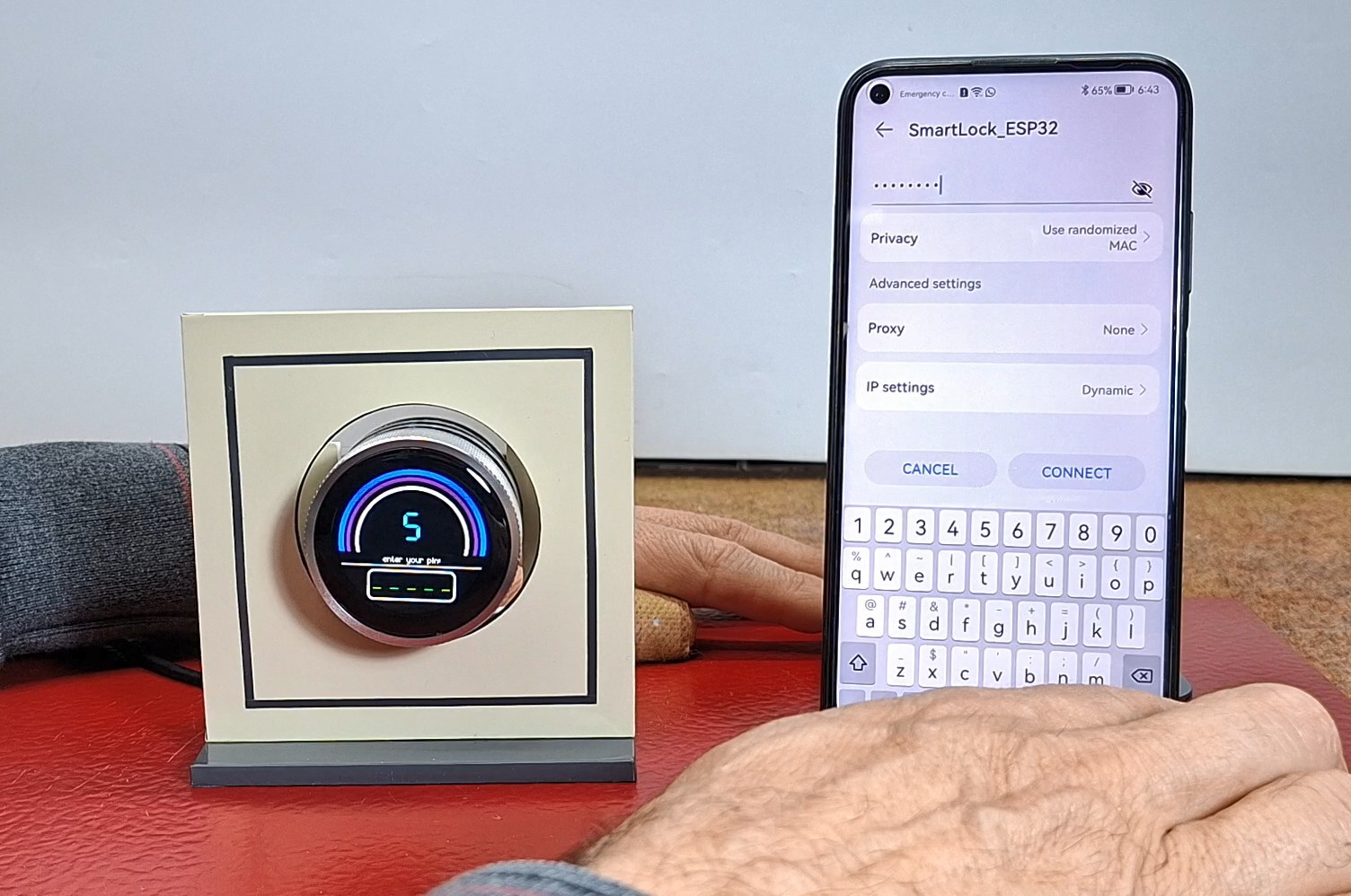 I also mentioned that we will use the access point option of the ESP32 microcontroller, which makes this lock a Smart device. The code has created a simple web interface through which the lock can be controlled. First, we need to connect to the Wi-Fi network with the name "SmartLock_ESP32" and the password "12345678" with a smartphone (we define these credentials in the code).