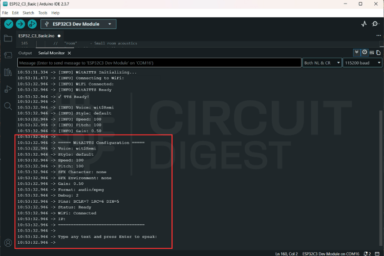 This flexible approach lets your ESP32-C3 speak any text delivered by sensors or user input.