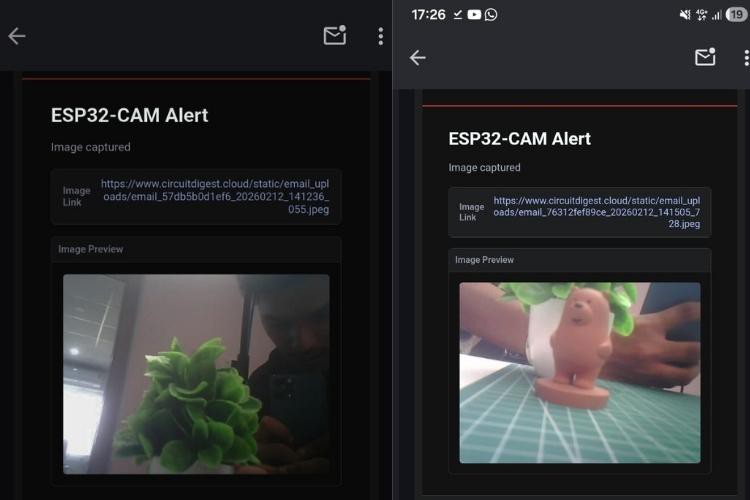 After capturing, press the second button. The ESP32 CAM connects to your Wi-Fi and sends the stored image to a cloud API endpoint. This API relays the photo to your registered email. -