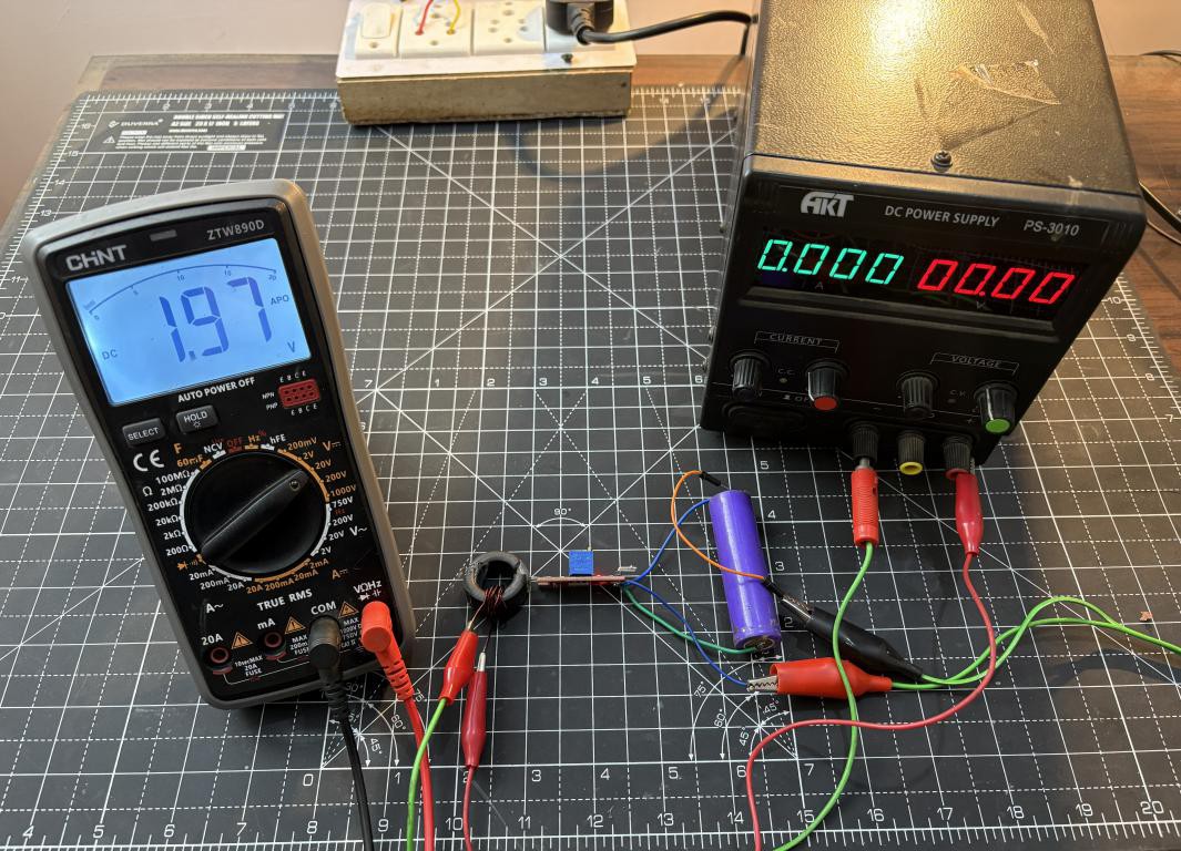 The sensor output pin produces a voltage proportional to the current flowing through the windings. Now to measure this voltage either can use a multimeter and then convert the readings to current values manually. I did it by flowing a constant current from my lab bench power supply and then writing down the voltage at 1A, 2A and 3A. Which gives me an idea how the readings change.