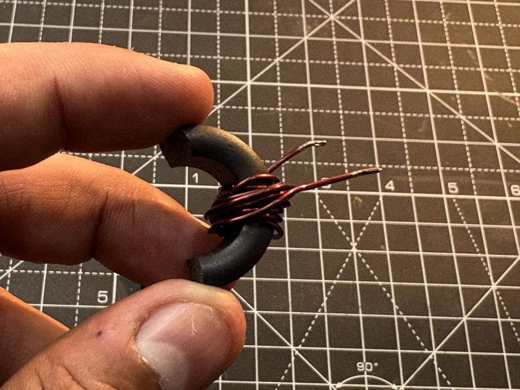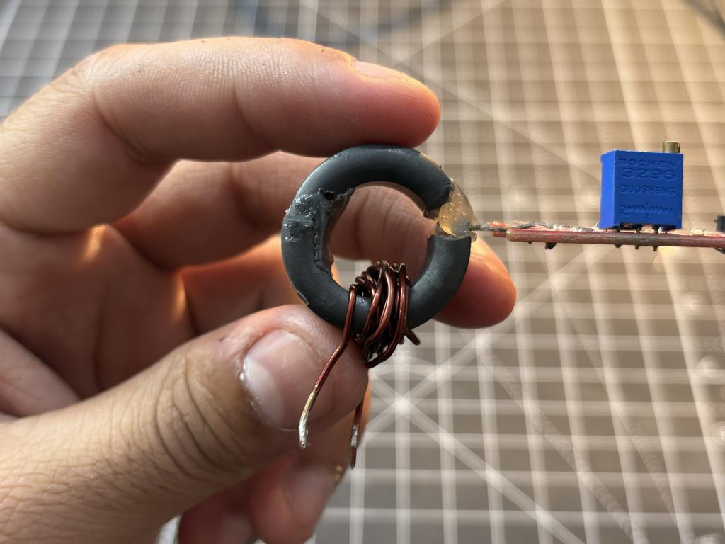 I used 10 turns of 24 AWG enamelled copper wire on a ferrite core.The number of windings (N) acts as a multiplier for the magnetic field. More windings mean a stronger magnetic field for the same current. Higher output voltage from the Hall sensor for the same current.nBetter resolution because small changes in current produce larger changes in voltage. Easier ADC conversion because the voltage swing is larger. For example, if 10 turns at 1A gives you 0.5V output, then 20 turns at 1A might give you 1.0V output. The higher voltage is easier to read with an Arduino ADC and gives you finer measurement steps.