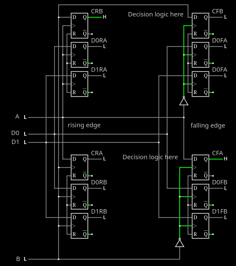 This interface is not limited to networking and could be repurposed for other types of inter-chip communication, passing messages from IC to IC on a PCB, because there is inherent support for a control channel and relaxed clocking requirements. For example I hope to use this to connect high-bandwidth designs implemented on future Tiny Tapeout projects.