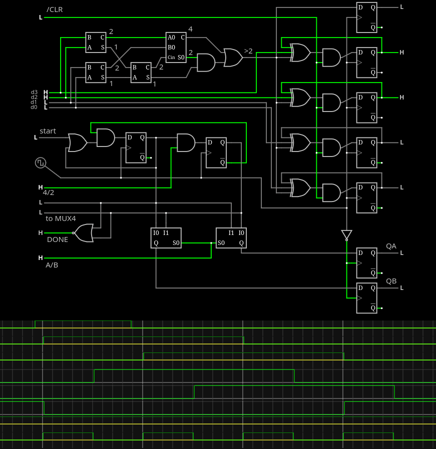 - The 4 cycles are clocked by 2 clock signals in quadrature. The phase (0-180°) transmits one additional bit per transaction, signalling the type of transaction (data or control/config)