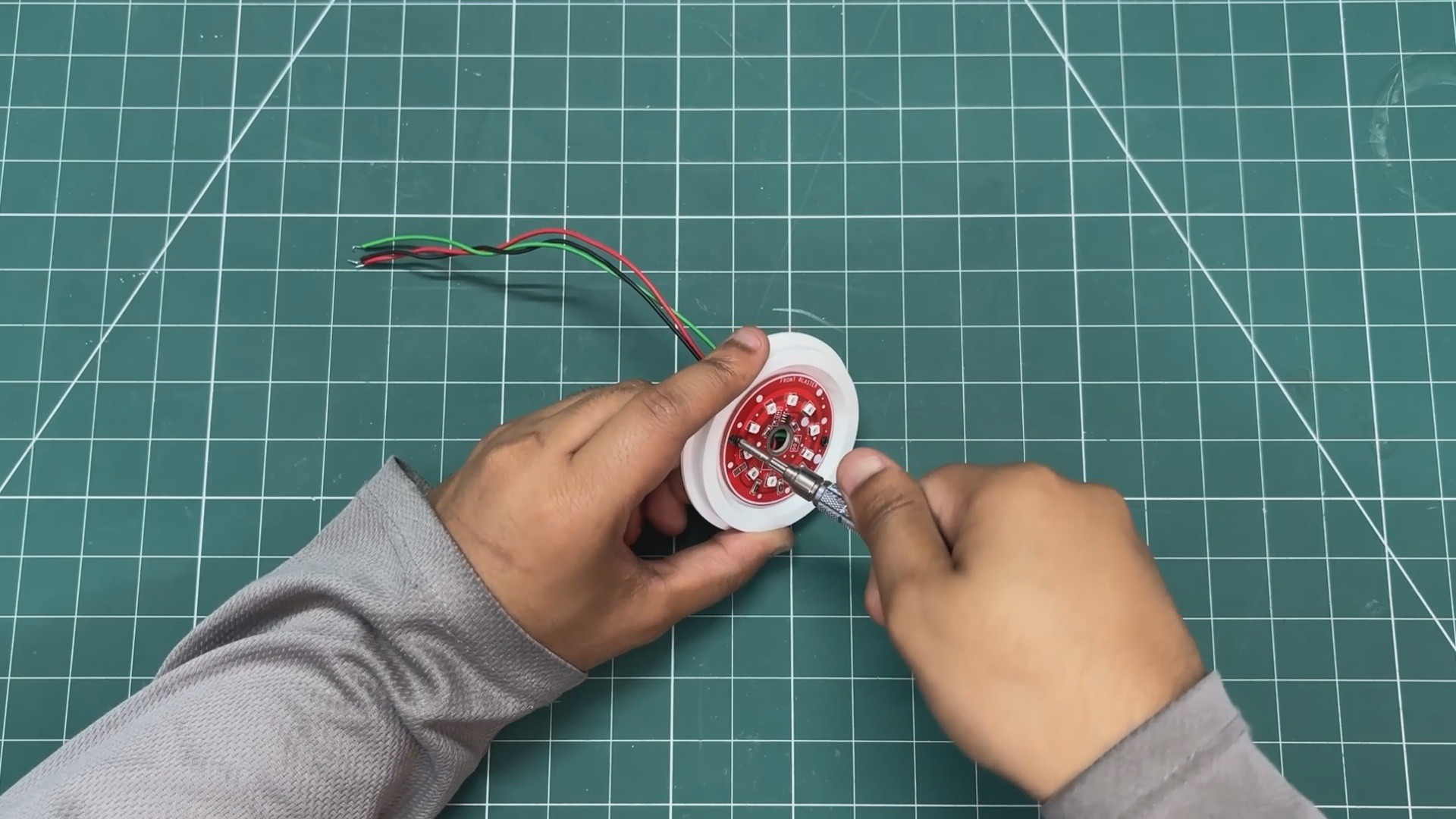 We passed the wires of the LED board through the hole in the LED board holder, then aligned the mounting holes of the LED board with the holder and used two M2 screws to secure them together.![]()
