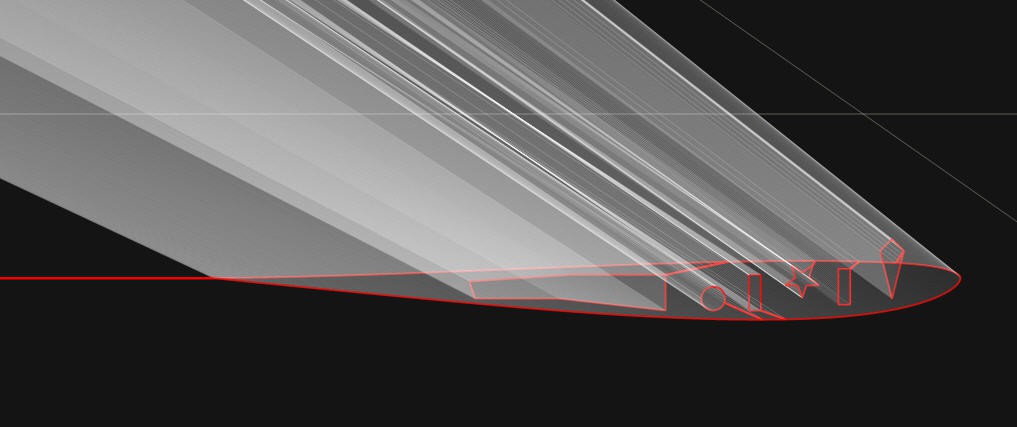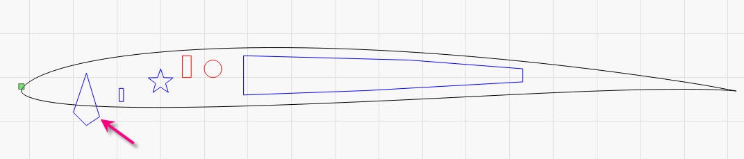 All the shapes are connected to the right side of the wing. Entries are perpendicular the profile.