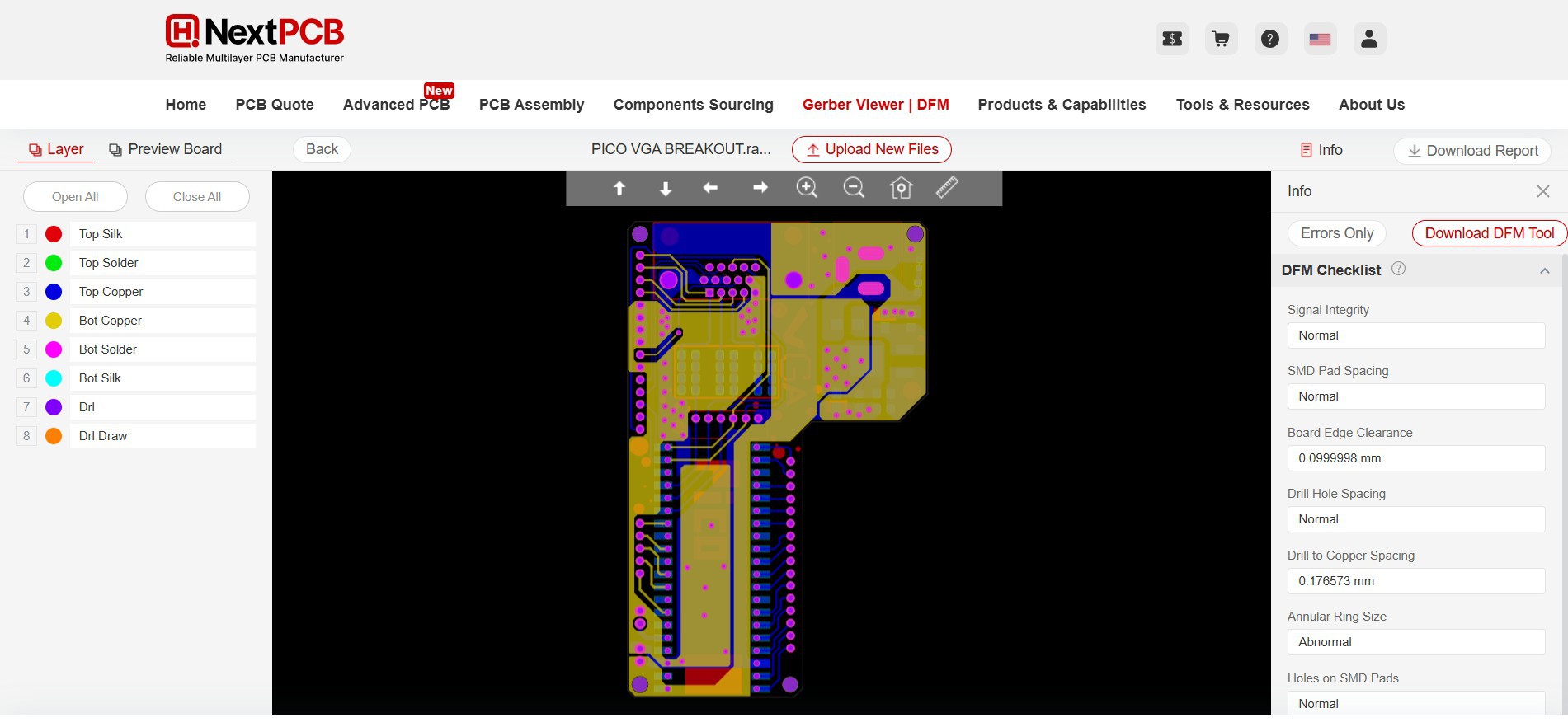 Also, NextPCB has its own Gerber Viewer and DFM analysis software.