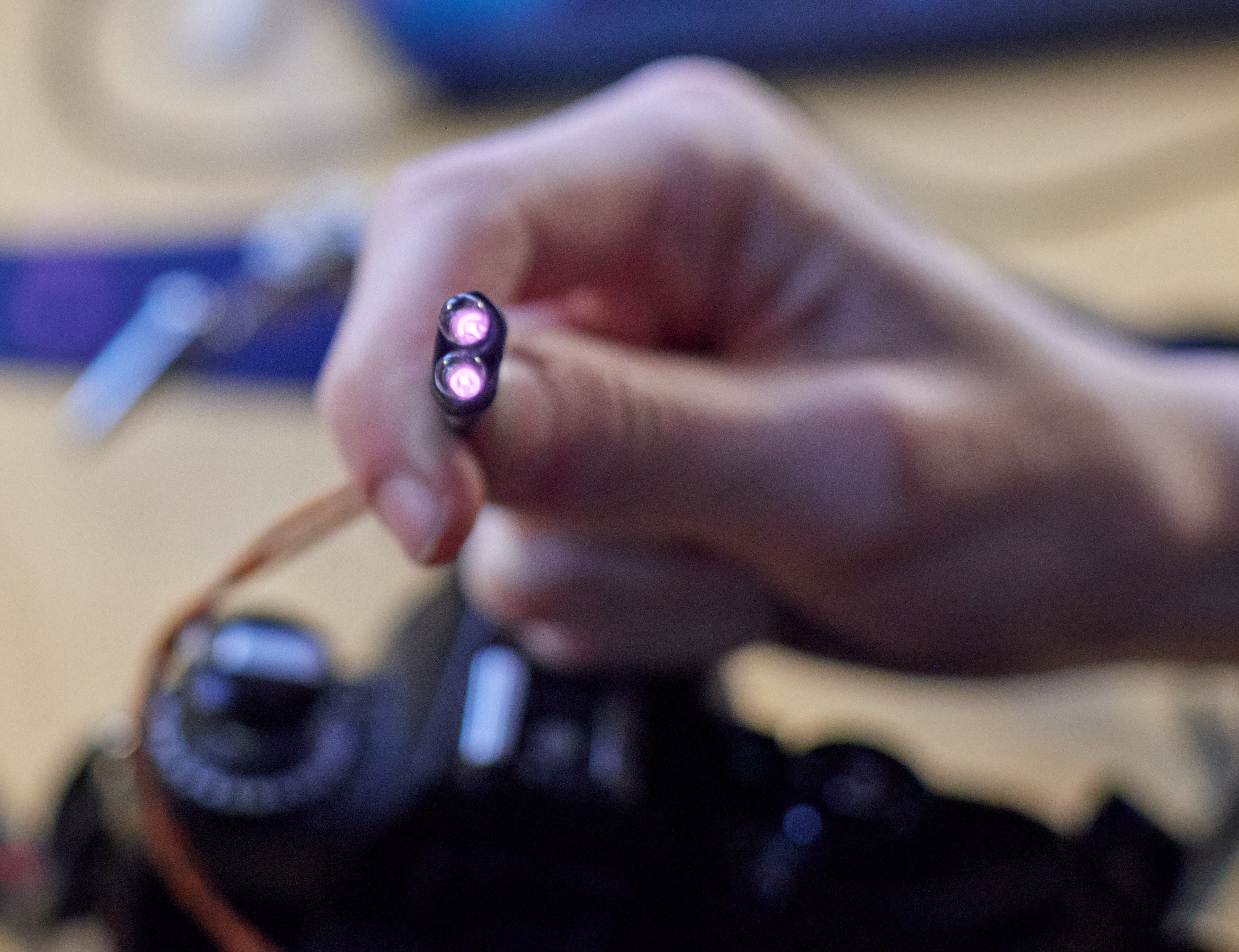 Note that 940 nm light is invisible so we can't actually see the light emitted by the LED's, but in our Nikon D500 camera, it shows as purple: