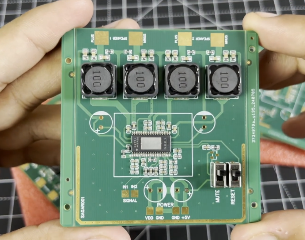 So that it can actually push real power into real speakers, with clean audio and proper engineering behind it. The goal was simple: a compact, high-efficiency stereo amplifier that can deliver 100W per channel into 4-ohm speakers. Just a clean analog-in, speaker-out power amplifier that I could pair with any source. In this article, I will walk you through the full design. Schematic and PCB layout with a real-world audio test and listening demo, check out the YouTube video linked with this project. I have designed a PCB in EasyEDA and fabricated it from JLCPCB and tested out the final prototype.