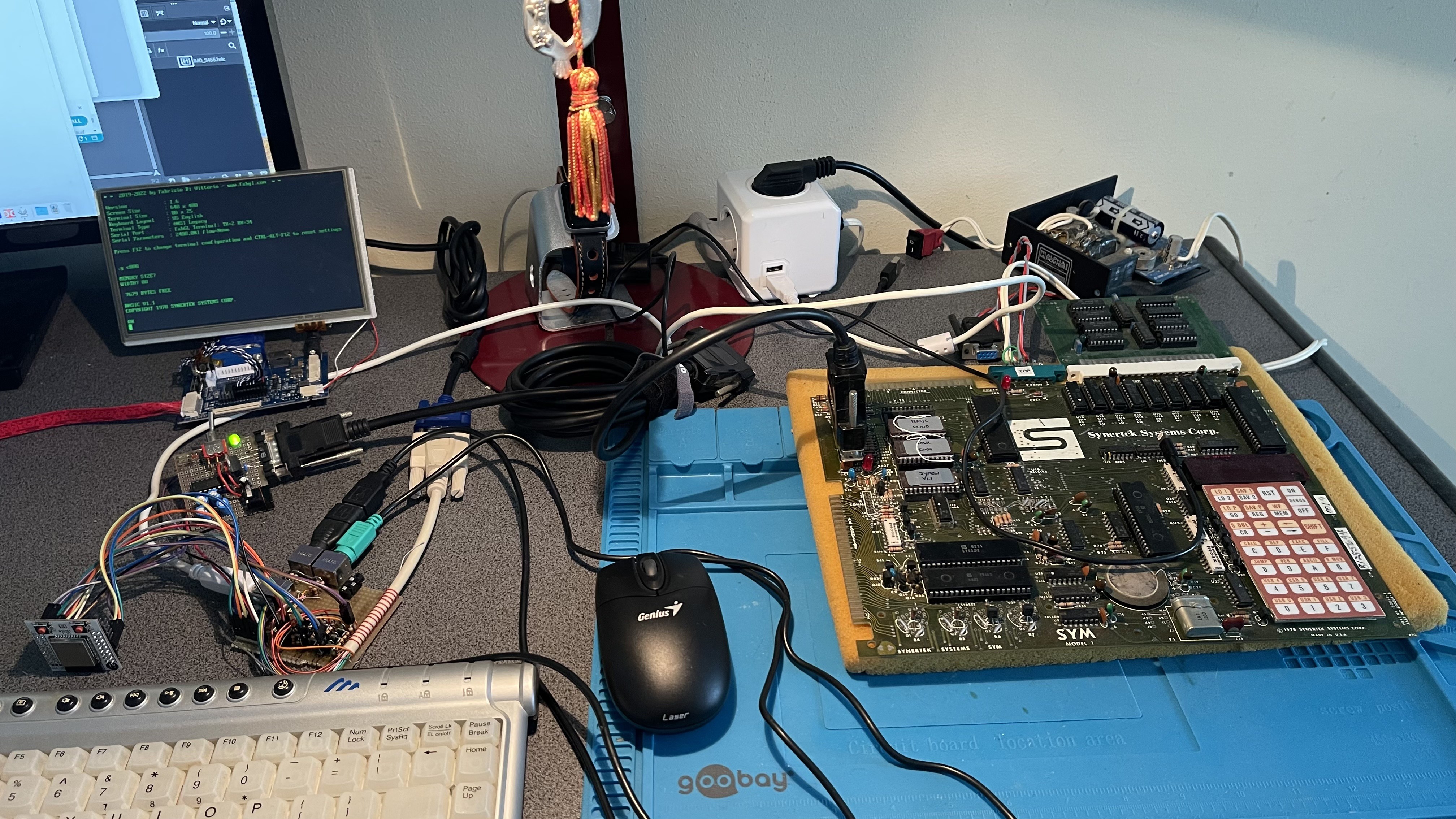 Some time ago I was working on a Minato 1866 Eprom Programmer, and a SYM-1 single-board computer. Both can only communicate with the operator through a keypad and 6 digits of LED displays.