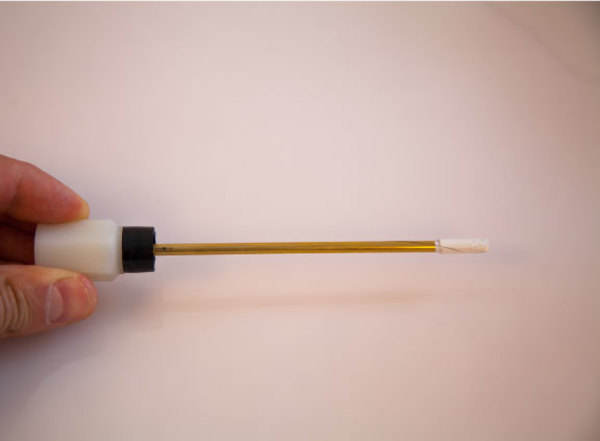 Plug the servo into a power module so the servo will go to its 0% power position and hold there. Attach the swing arm (A-2) to the servo motor so the arm is pointing down toward the tilt valve. Secure the swing arm with a screw and washer. Connect the valve puller (A-1) to the swing arm (A-2) using a #4 machine screw and nut. Adjust the position of the valve puller and the board so that the hose is not touching the tube on the tilt valve (otherwise the valve may release helium even when the servo is not activated).