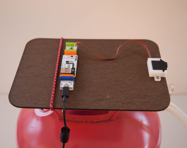 This project is set up to trigger a servo every time the cloudBit receives a pulse though IFTTT’s Instagram channel. IFTTT is a service that lets you connect to different web apps through simple conditional statements. When the cloudBit is triggered, the servo pulls down on a hose connected to the nozzle of a helium tank, releasing helium into a balloon. Any time a user hashtags a name of your choosing, a trigger is sent to IFTTT, which in turn sends an output signal to the cloudBit. Bask in your glory and float on!