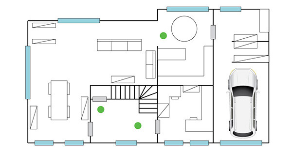 MoXi consists of three parts: MoXi positioning sensors, MoXi coordinators and the MoXi application. The positioning sensors are battery powered. They are placed on the walls (e,g, with industrial tape) of the house to be monitored with a maximum of one per wall, and they connect wirelessly to MoXi coordinators.