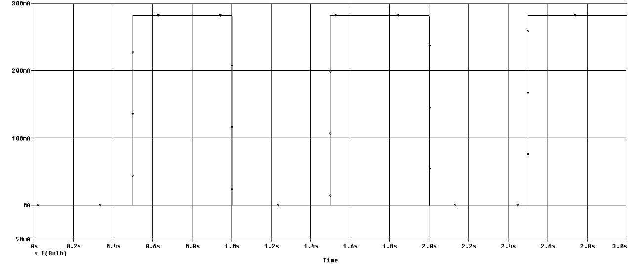 The graph above is showing that the MOSFET transistor is not saturating. There must be something wrong with the MOSFET component model in the PSpice software student edition that I used. Usually MOSFET transistors would have a higher voltage current gain than the value specified in the model.
